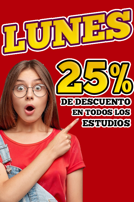 Todos los lunes adquiere cualquier estudio con el 25% de decuento.